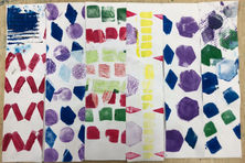 For the demonstration show students how to use the paint sponges to stamp different shapes onto their paper. Remind students that they should be filling the entire page with the pattern they choose, and to keep their shapes close so they have the maximum amount of space to make their pattern.