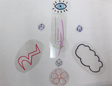 Explain the steps for this project. First, come up with 10-12 pieces to draw separately on a pieces of paper (these can be symbols, lines, shapes, objects, patterns, colors *no words or numbers*). Then place your clear paper over the sketches and trace with your sharpie. Then color in your pieces and cut them out (put them in your envelope so you don't loose them). After you've cut everything out, start placing them on a new blank piece of paper to create a composition. You will be creating 5 compositions total, and each one should include at least 7 of your pieces (all pieces need to be used at least once). When you have a completed composition, call the teacher over so they can take a picture of it before you take them off and start over.